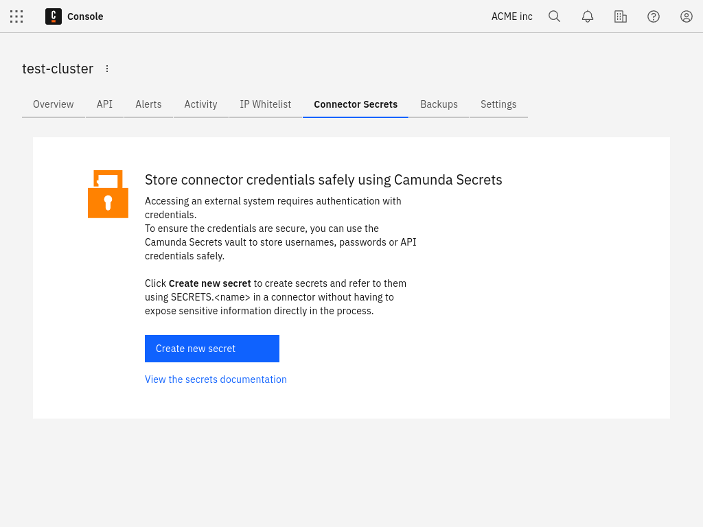 Create secrets and reference them in your Connectors without exposing sensitive information in your BPMN processes.