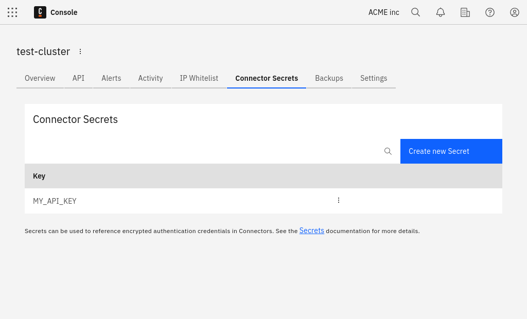 Now you can reference your secret in any Connector as described in the Connectors guide.