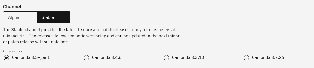 You can provision cluster components using one of two channels, following the Camunda release policy.